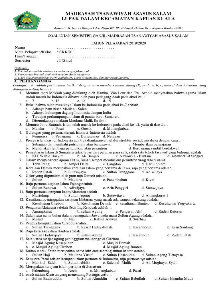 Hvs murni jenis cover : Contoh soal hots ski kelas 9 mts semester 1. Soal penilaian tengah semester (pts) ganjil. Lengkap administrasi guru smp/mts >> disini. Latihan soal dan kunci jawaban uambn ski sejarah kebudayaan islam mts tahun 2019 2020 yang bersumber dari naskah .